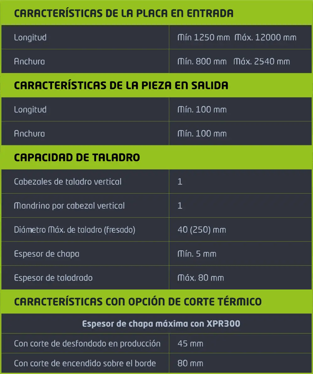 Línea automática CNC de taladrado, fresado y corte térmico para chapas de grandes dimensiones.